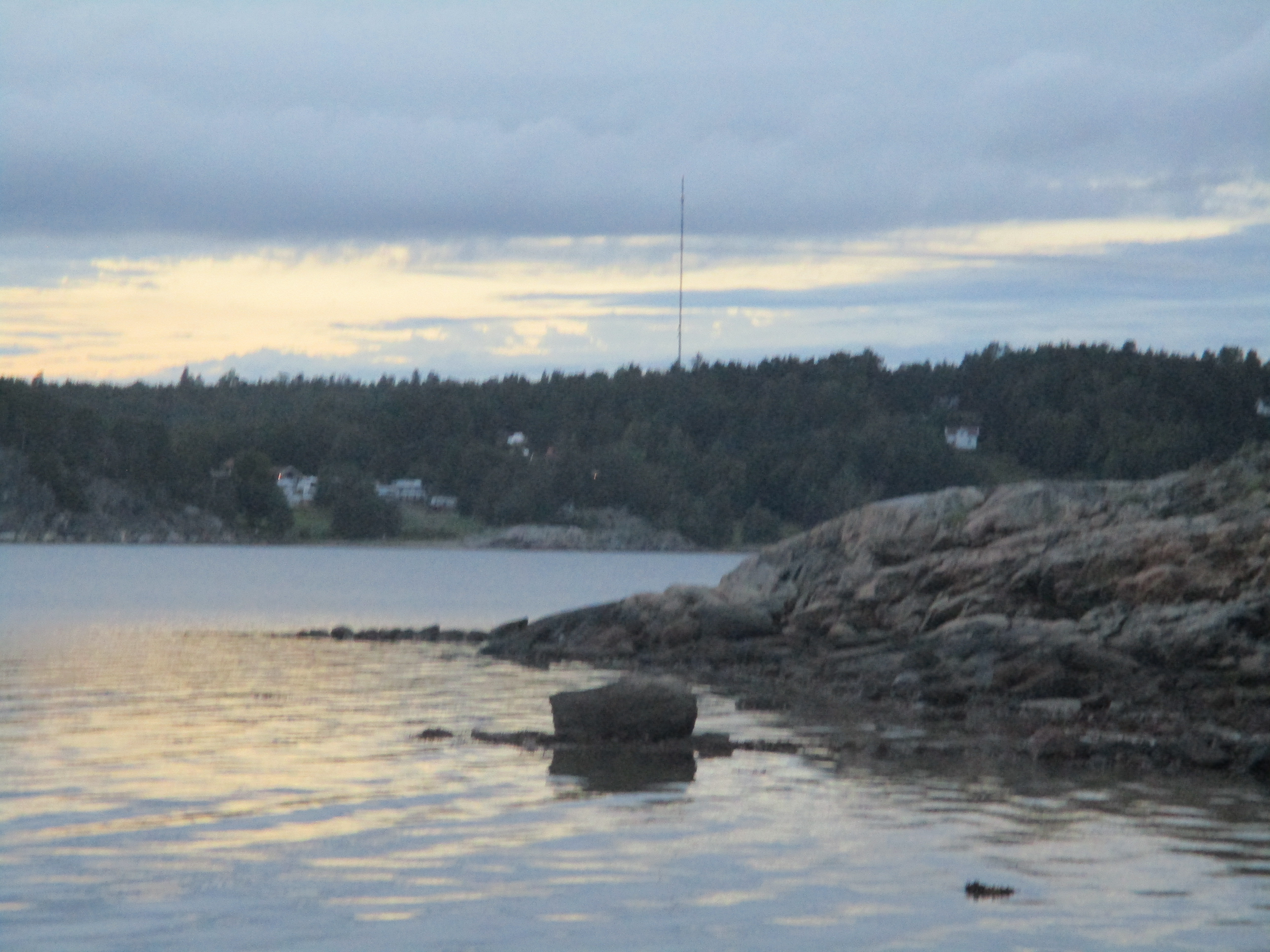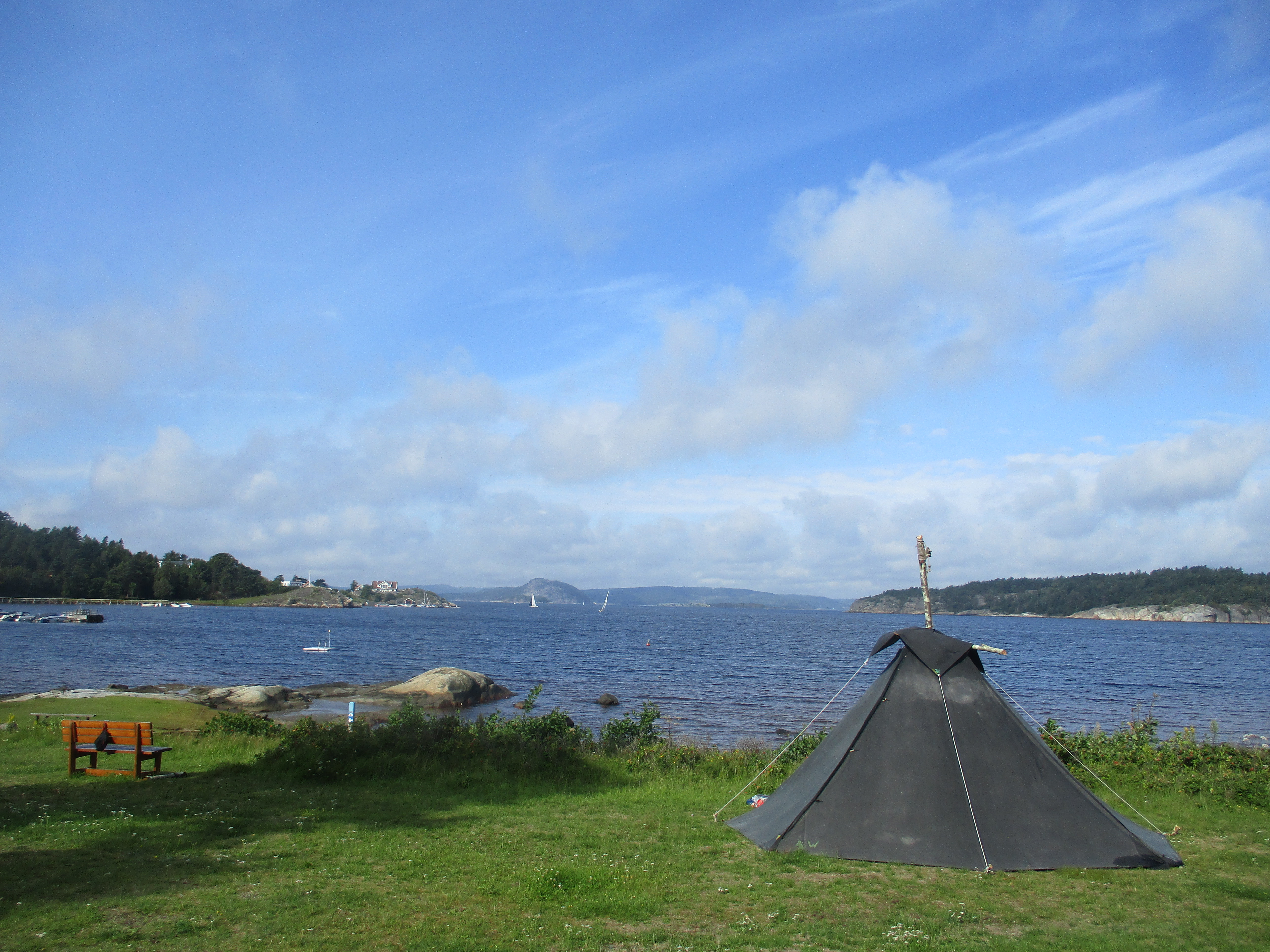 Nachdem wir uns in Uddevalla mit Essen eingedeckt und auf einem Fußballplatz übernachtet hatten, sah die Welt dank einem sonnigen Tag schon viel besser aus. Ein Baum bot Platz, um unsere nassen Sachen zu trocknen (von denen wir zu diesem Zeitpunkt mehr als trockene hatten!), danach wurde das örtliche Hallenbad unsicher gemacht. Einigermaßen sauber, mit trockenen Kleidern und Schuhen sowie neuem Proviant entschieden wir uns, den sogenannten Kuststigen (Küstenwanderweg) entlang bis nach Ljungskile zu laufen. Dabei verließen wir Uddevalla entlang des Hafens uns verließen über eine Bucht die Gegend. Das sonnige Wetter und das mediterranblaue Meer ließen uns die verregneten Tage auf dem von Urwald eroberten Bohusleden schnell vergessen – wie unterschiedlich dieses Land doch sein kann! Schließlich erreichten wir Ljungskile und konnten gerade noch rechtzeitig, bevor der Regen wieder begann unsere Kohte aufschlagen.
