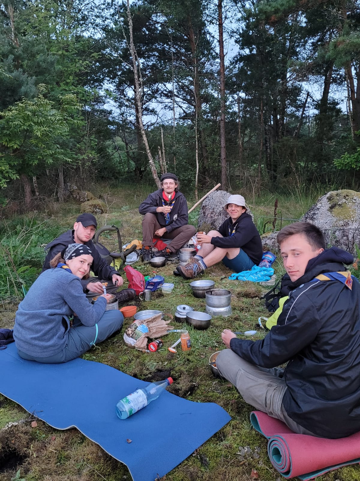 Nach vier Tagen Lager machte sich unsere Fahrtengruppe gemütlich auf den Weg. Leider mussten wir erkennen das eine für uns wichtige Brücke nicht existierte und wir deshalb am Ende zwar 17 km gelaufen waren, aber schlussendlich nur 4 km vom Lagerplatz entfernt unseren Schlafplatz fanden. Zum Sonnenuntergang gabe es dann noch Nudeln mit verschiedenen Pestosorten. Morgen geht es dann für uns weiter nach Uddevalla.